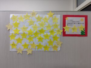 クリスマス、年末年始に向けて願い事や感謝の言葉を書きました。教室に通ってくれている生徒さんにも書いてもらいました。
