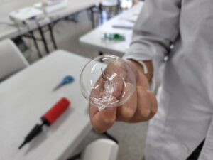 昨日、生徒が「風船テープ」を持って来ました。実験の合間にこれにも挑戦していたのですがなかなかコツがつかめないでいました。私も何度か挑戦しましたが意外と難しくて風船がうまくできませんでした。